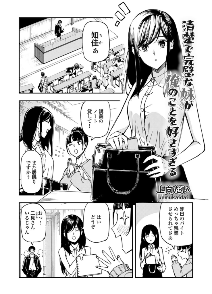 周囲が「よほどの御曹司と付き合っているのか」と邪推する中、千佳が血相を変えて帰宅した先にいたのは、世間の予想とは真逆の存在――ブサメンでぽっちゃりしたゲーマーの実の兄でした。千佳にとって、この世界で唯一価値があるのは兄の存在だけ。帰宅するなり兄に抱きつき、その匂いを嗅ぎ、盲目的な愛を注ぎます。当の兄は、そんな妹の過剰な愛情を少し疎ましく思っていましたが、千佳の攻勢は止まりません。