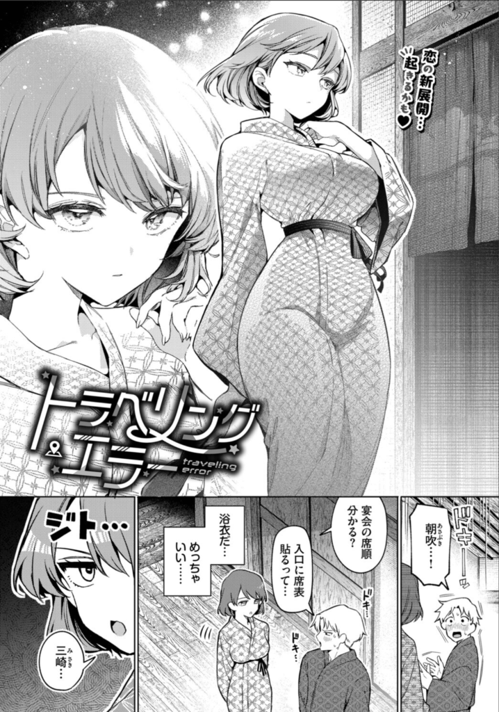 物語は、主人公・三崎が勤める会社の社員旅行から始まります。仕事仲間として、そして秘密の肉体関係を持つ相手として、朝吹のことを意識せずにはいられない三崎。宿に到着し、いつも以上に色っぽく見える浴衣姿の彼女に見惚れていると、朝吹を慕う後輩男子が距離を詰めてきます。